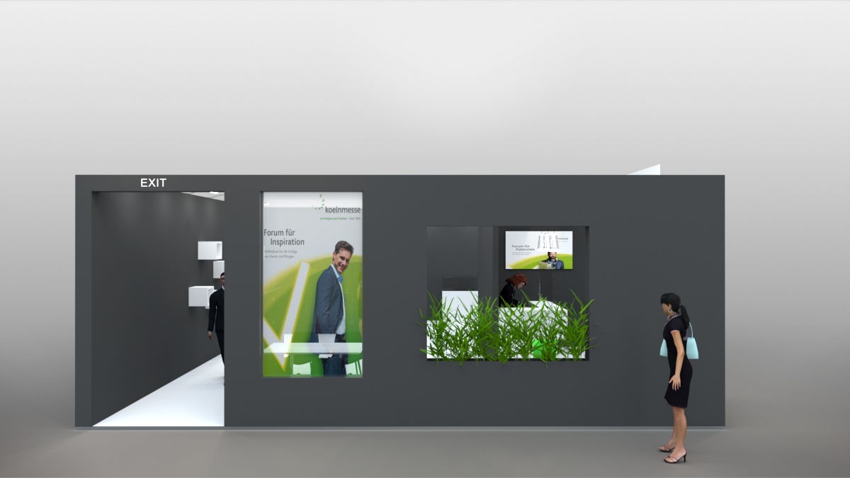 Die Preisangaben beziehen sich immer auf einen B8 x T7 = 56m² Eckstand. Andere Standgrößen und Standformen (Reihenstand, Kopfstand, Blockstand) sind modular adaptierbar und kalkulieren wir nach Ihrem Briefing gerne individuell für Sie.